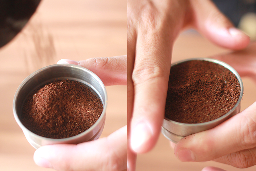 研磨20~22克的咖啡粉,研磨粗細大約與濃縮咖啡用的咖啡粉相當。
