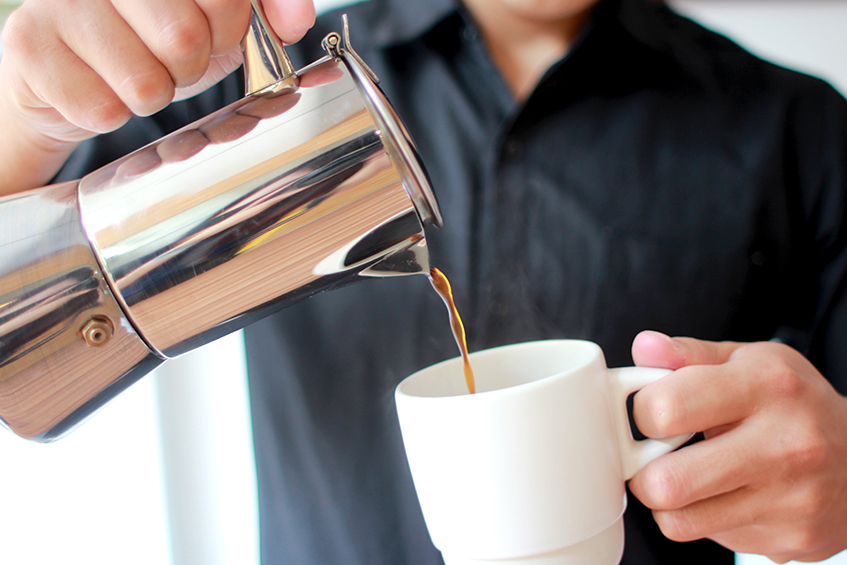 將咖啡倒入馬克杯中,即可享受濃郁的咖啡了