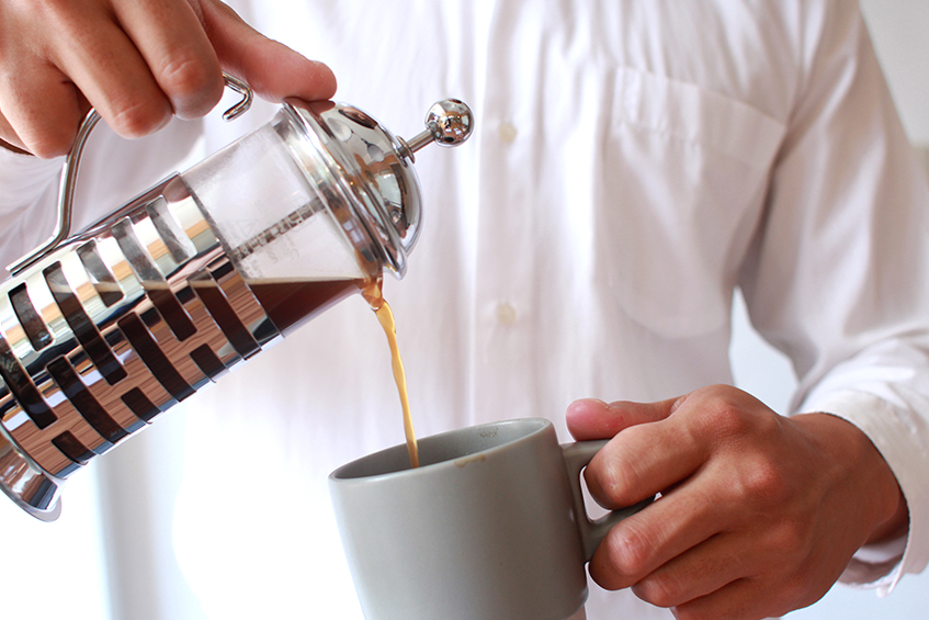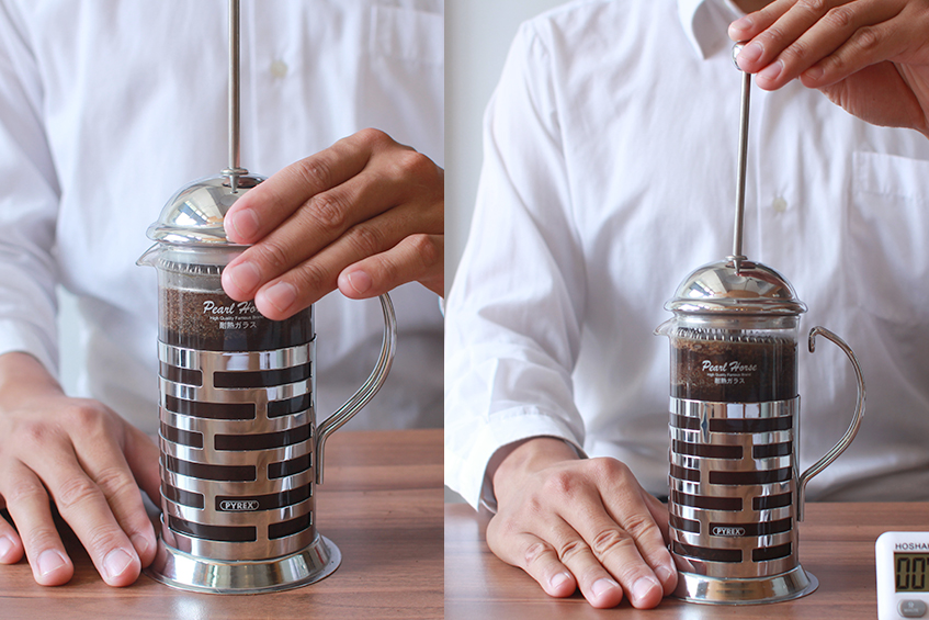 時間到後,將蓋子上的濾網向下壓至底部,將咖啡倒入杯中,即可品嘗一杯美味的咖啡
