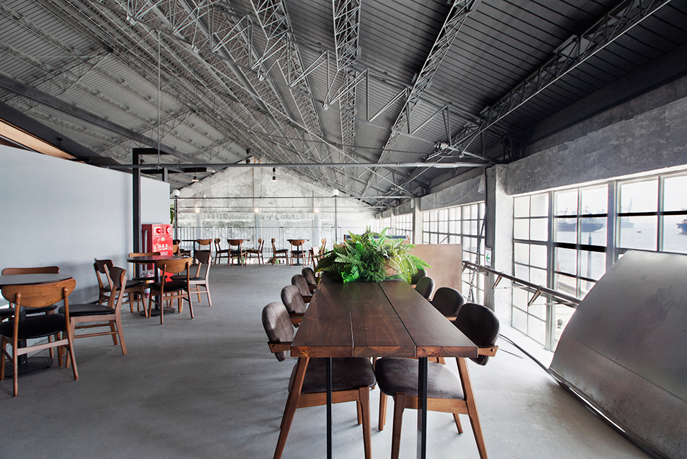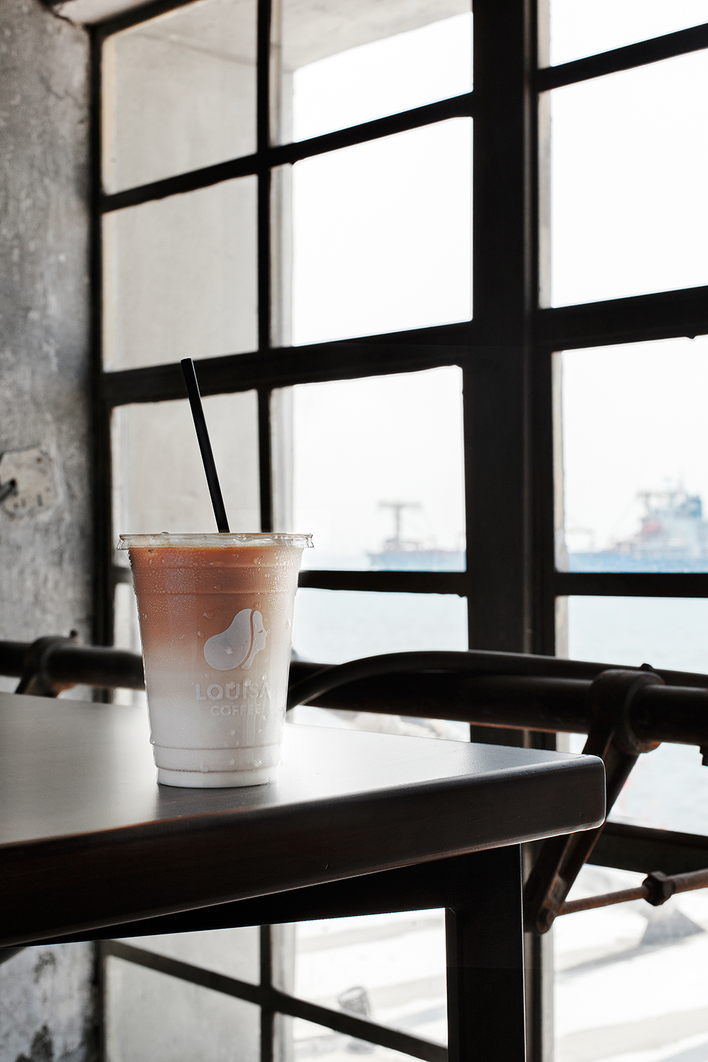 路易莎從收到進駐邀請到開幕僅短短的16天(自3/5-3/20完工),以幾近不可能的任務完成近百坪的棧二庫空間規劃,設計師結合港灣的元素,打造有如船隻停靠港口休憩的意象,每個細節都呼應了倉庫碼頭的歷史氛圍。例如:拆卸舊船的老吊燈、運用黑柵欄形塑港灣內外的生活型態,店內隨處可見點綴著船隻的老物件,除了客座區引人注目的路易莎女神與海浪的作畫外,工作區更巧妙運用了船舵,呈現船員在船艙內工作的氛圍。