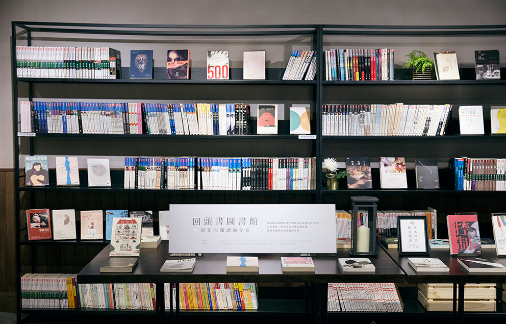 二樓,印入眼簾的是一片書牆,讓人誤以為自己走到某某書店,歡迎來到「LOUISA回頭書圖書館」。這些回頭書曾經在書店供人翻讀,或在運送途中被輕微喀傷,這些小缺陷沒說沒人會發現,我們希望好書別被埋沒在倉庫裡,在路易莎讓它再次被閱讀,讀了喜歡可以99元買回家,平價好咖啡配上平價好書,徹底落實用路易莎的初衷。