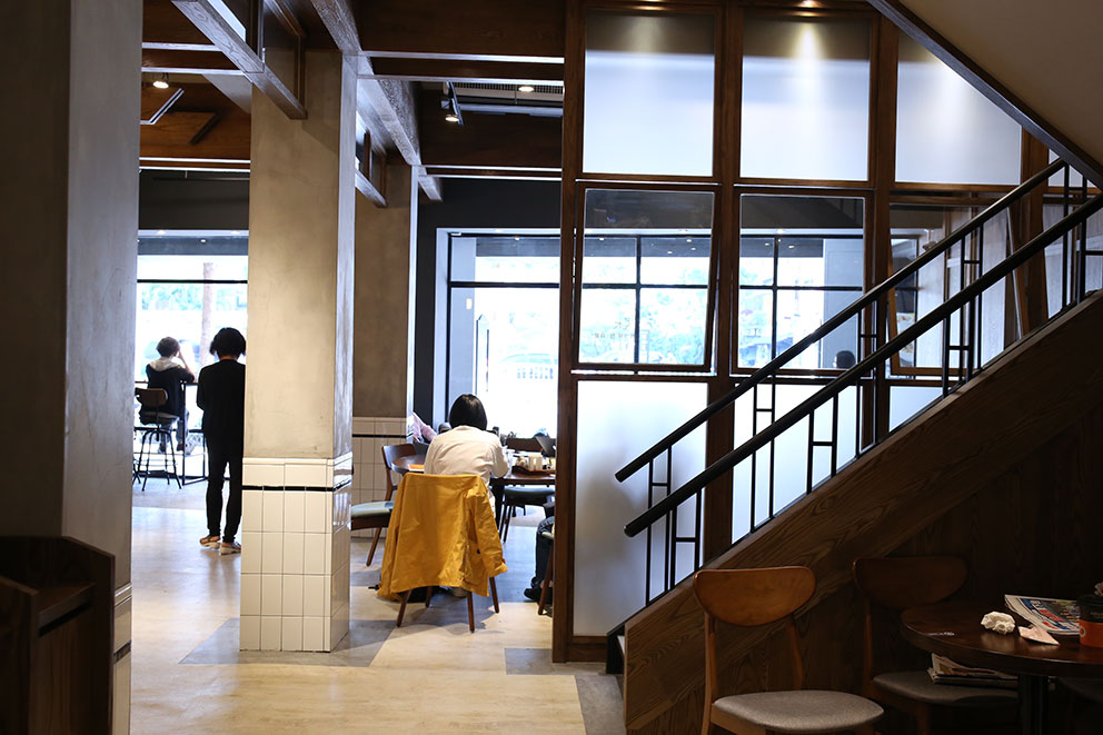 一樓,最有趣的莫過於中間一座大圓桌,全世界少見咖啡館內有圓桌,沒想到此桌成為一樓最熱門的座位區,顧客們各自帶著書、筆電,因圓桌成為比鄰。